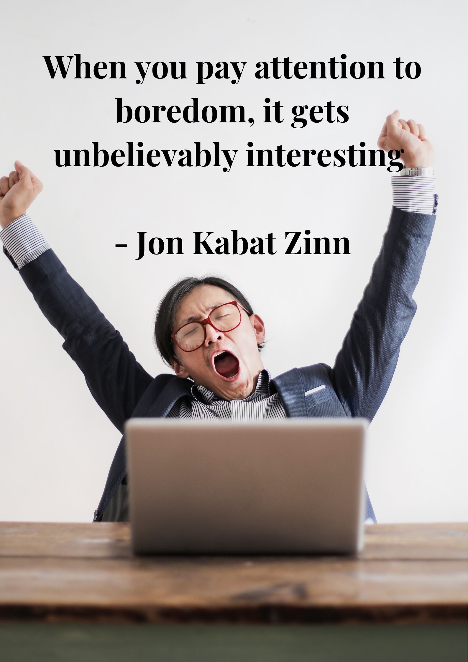 Kabat-Zinn’s quote turns a common human experience on its head. Boredom is usually something we try to escape. We distract ourselves, scroll our phones, or search for stimulation because boredom feels empty, uncomfortable, or pointless. But Kabat-Zinn invites us to do the opposite: to stay with it and really look at it. When we pay attention to boredom, we begin to notice that it isn’t a single, solid thing. It’s made up of sensations, thoughts, restlessness, impatience, and subtle emotions. There may be tightness in the body, a looping inner voice, or a craving for something “else.” By observing these details, boredom transforms from a dull void into a rich field of experience. What once felt flat suddenly has texture and movement.