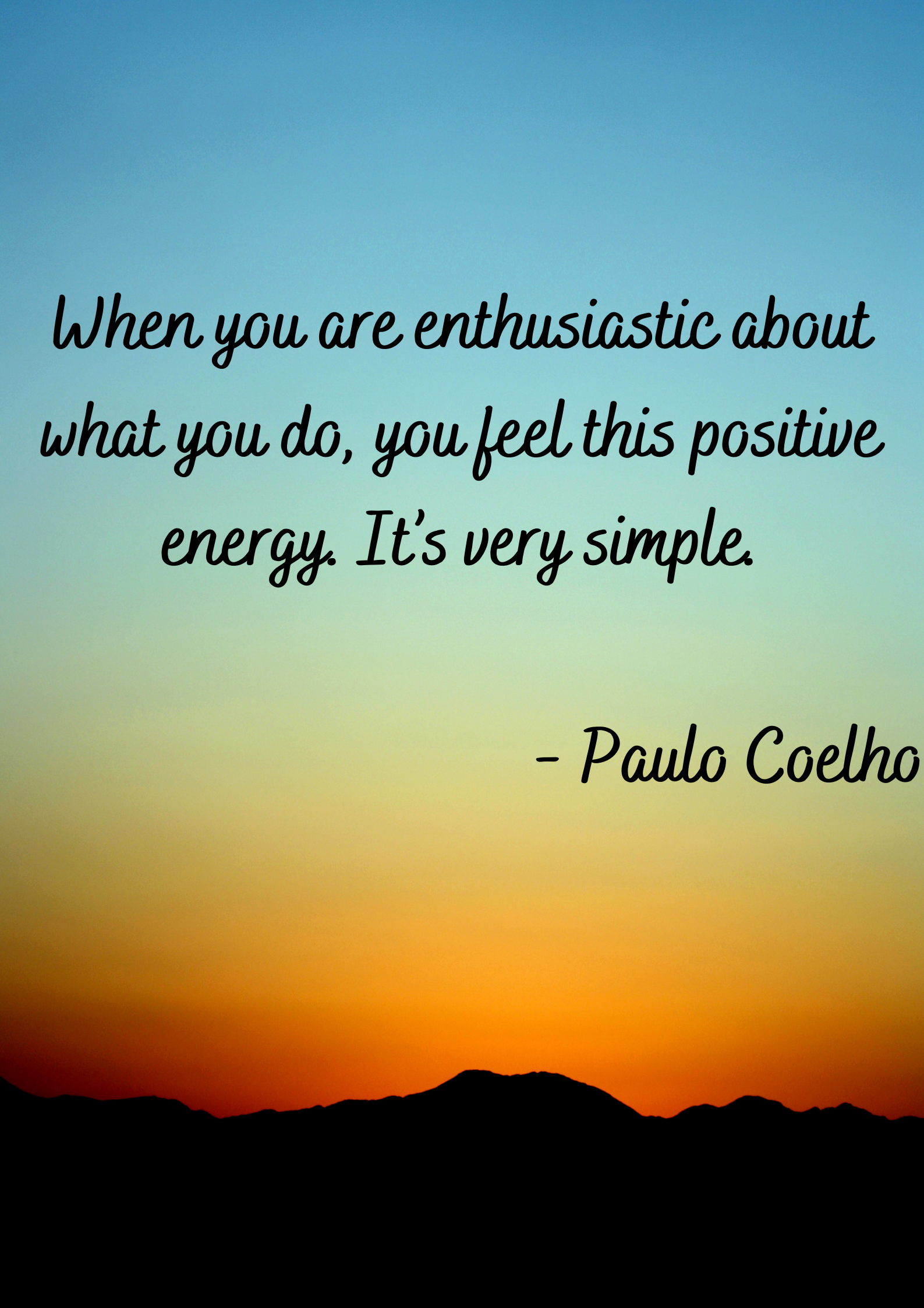 Here’s this week’s positive thought. It’s from Paulo Cohelo and is something we should all do. Positivity breeds positivity and so let’s be enthusiastic about what we do so we all can have a positive energy surrounding us at all times.