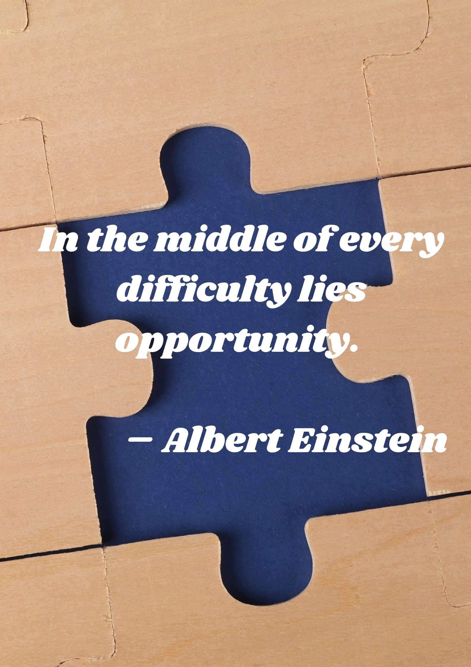 As the world is trying to battle COVID, today’s quote from Albert Einstein is so apt. Einstein says that amid every difficulty lies an opportunity. This is part of a larger quote attributed to him which says Out of clutter, find simplicity. From discord, find harmony. In the middle of difficulty, lies opportunity. What this means is that when one is in trouble and difficulty, in the middle of problems, if we find the core of the issue we are facing, that will give us the key to that issue. It also means that when one faces challenges, one has a greater possibility of growth and understanding. If things are easy, one does not change one’s preconceptions or alter one’s view of life.