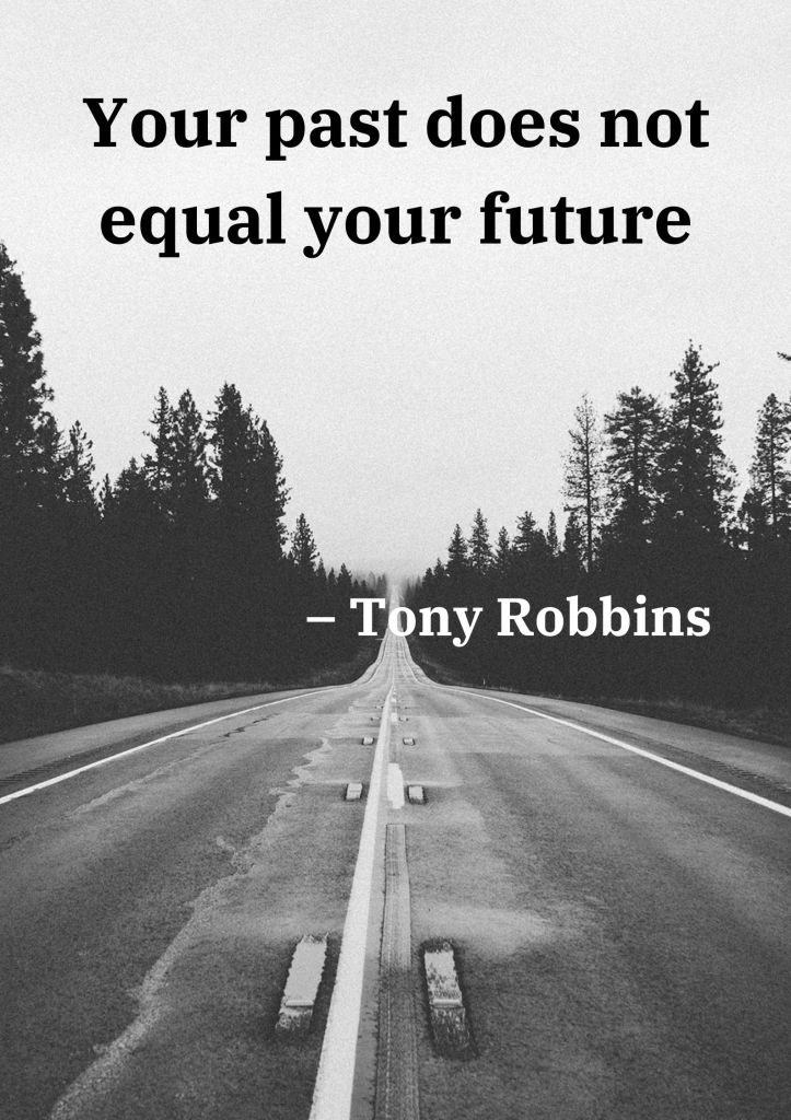 Today’s quote is something that the American author, coach, speaker, and philanthropist Tony Robbins has said. Robbins who is is known for his infomercials, seminars, and self-help books reminds us that our past does not equal our future. Simple, to the point and something we all tend to forget most of the time. So forget what you did yesterday, focus on today and tomorrow.