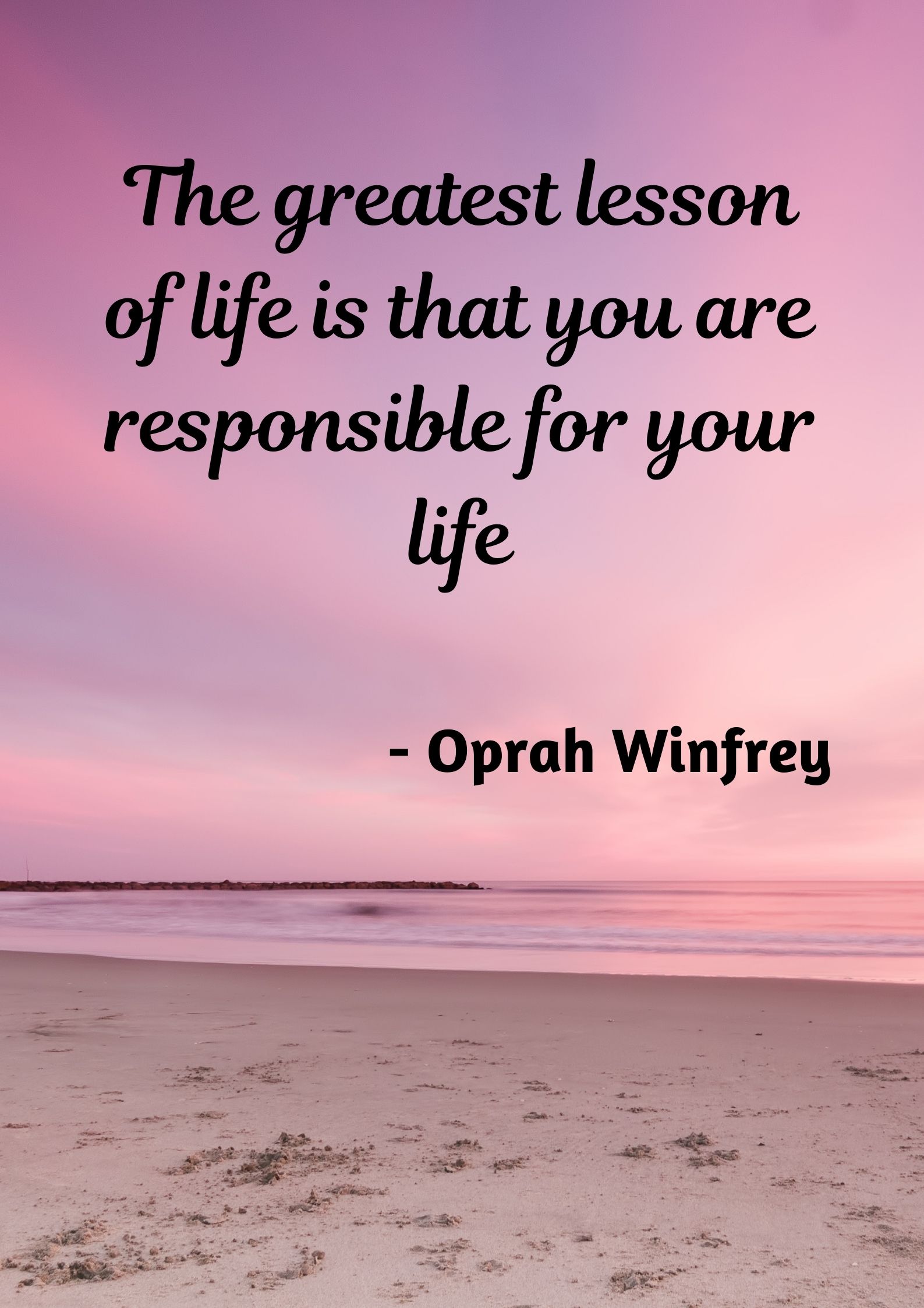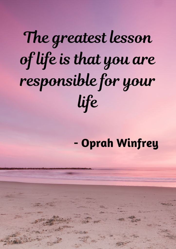 Today’s quote comes from the American talk show host, television producer, actress, author, and philanthropist, Oprah Winfrey who is best known for her talk show, The Oprah Winfrey Show. She says the greatest lesson of life is that you are responsible for your life. When we think about it, this is so true and resonates with me. I know I am responsible for everything that happens, both good and bad, and so I need to work to make sure that more good things are happening in my life as opposed to the bad.