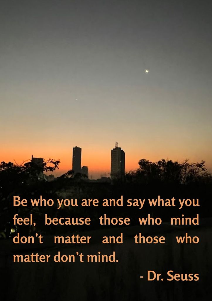 Today’s quote is from one of my favourite children’s authors, Dr Seuss. He tells us to be ourselves and say what we feel because those who mind don’t matter and those who matter don’t mind. It’s such a simple quote, but so profound because in just a few words, it tells us to be true to ourselves and those who love and care for us will do so irrespective of how we are and those who want to find faults will do so even with perfection.