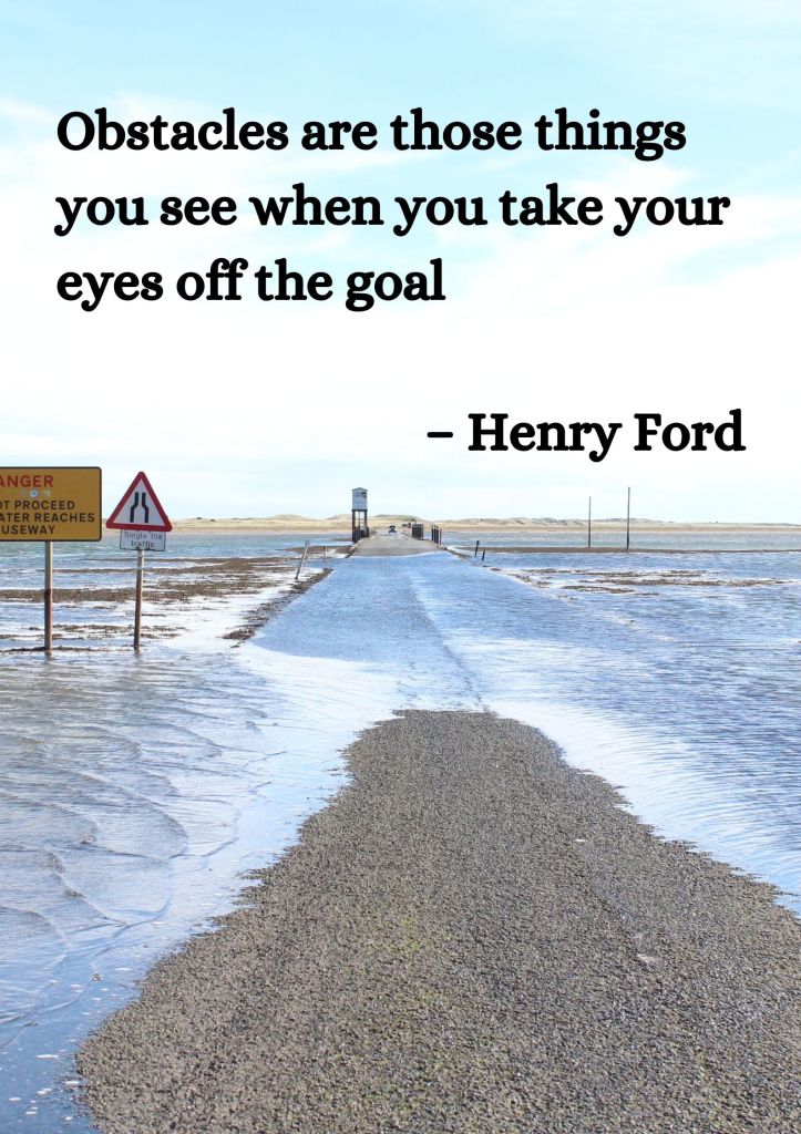 Today’s quote comes to us from Henry Ford, the American industrialist, business magnate, founder of the Ford Motor Company, and chief developer of the assembly line technique of mass production. By creating the first automobile that middle-class Americans could afford, he converted the automobile from an expensive luxury into an accessible conveyance that profoundly impacted the landscape of the 20th century. Ford tells that obstacles are what we see when we take our eyes off our goals. What this means is that when we are focused on the goal and has blinkers on, then when we take our laser focus off the goal, everywhere we see obstacles around us.