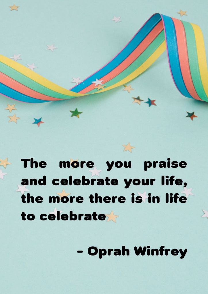 Today’s quote is from someone famous throughout the planet – Oprah Winfrey. She reminds us that the more we praise and celebrate our life, the more there is in life to celebrate. This is a good example of being positive and seeing a glass as half full as opposed to it being half empty. When we start to focus on the good things in our life and start and end each day with gratitude, we will be grateful and happy. Conversely, when we start and end each day with negative thoughts and negativity, we become resentful, angry and sad at life which in turn becomes a neverending loop of negative energy in our lives.