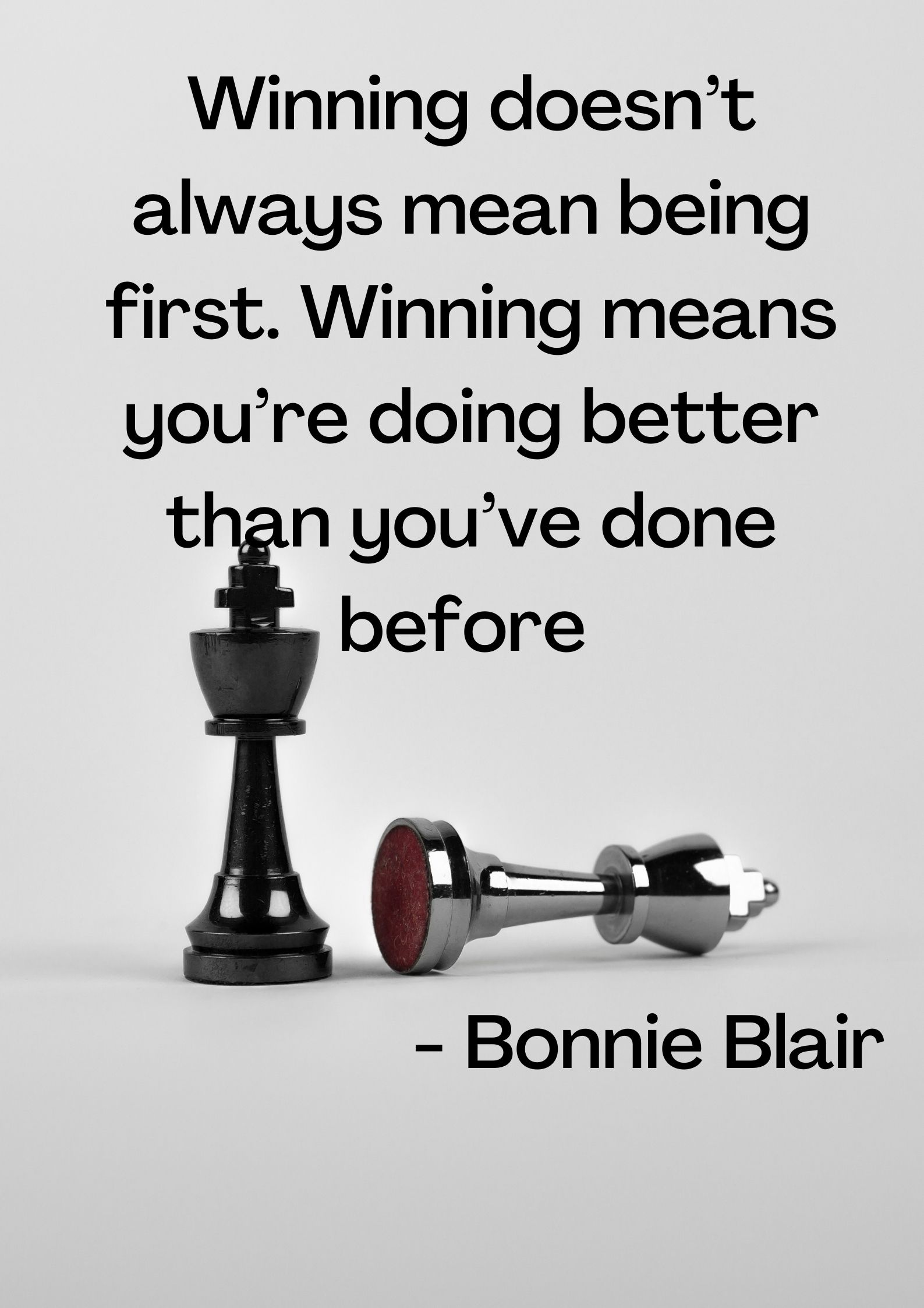 One of the most decorated skaters in Olympic history, Bonnie Blair comments that winning doesn’t always mean being first; winning means we’re doing better than we’ve done before. By its very definition, winning is the ultimate victory, but according to Blair, winning means being better each time, that we should focus on our personal growth and each time we get better at something, that is akin to a win.