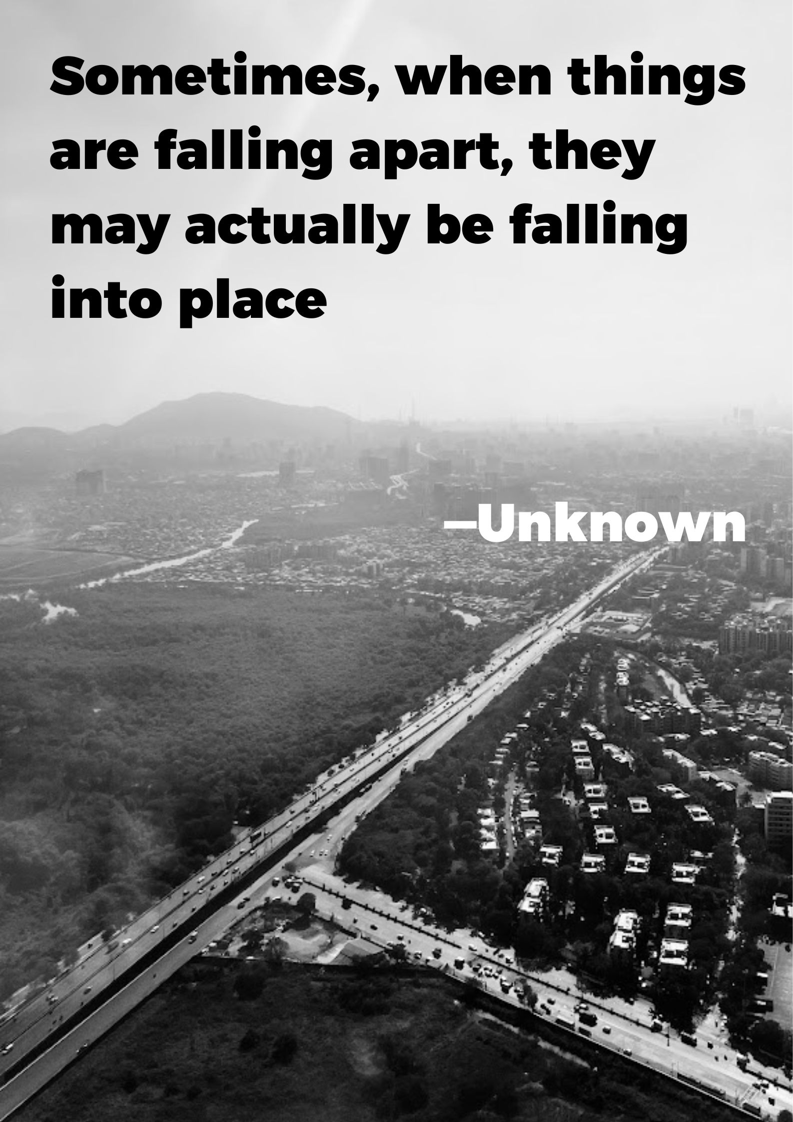 Today’s quote does not have any author attributed to it, but what the quote reminds us is that sometimes when our life seems bleak and everything that can go wrong, does and we hit rock bottom, that’s when we need to realise that it’s essential to reach rock bottom because it is only then we will appreciate what we achieve in our lives. Sometimes, for everything to come together, things need to fall apart first. Not getting what we want can be a huge step toward reaching a bigger dream. Everything that happens comes along because it simply needs to happen.