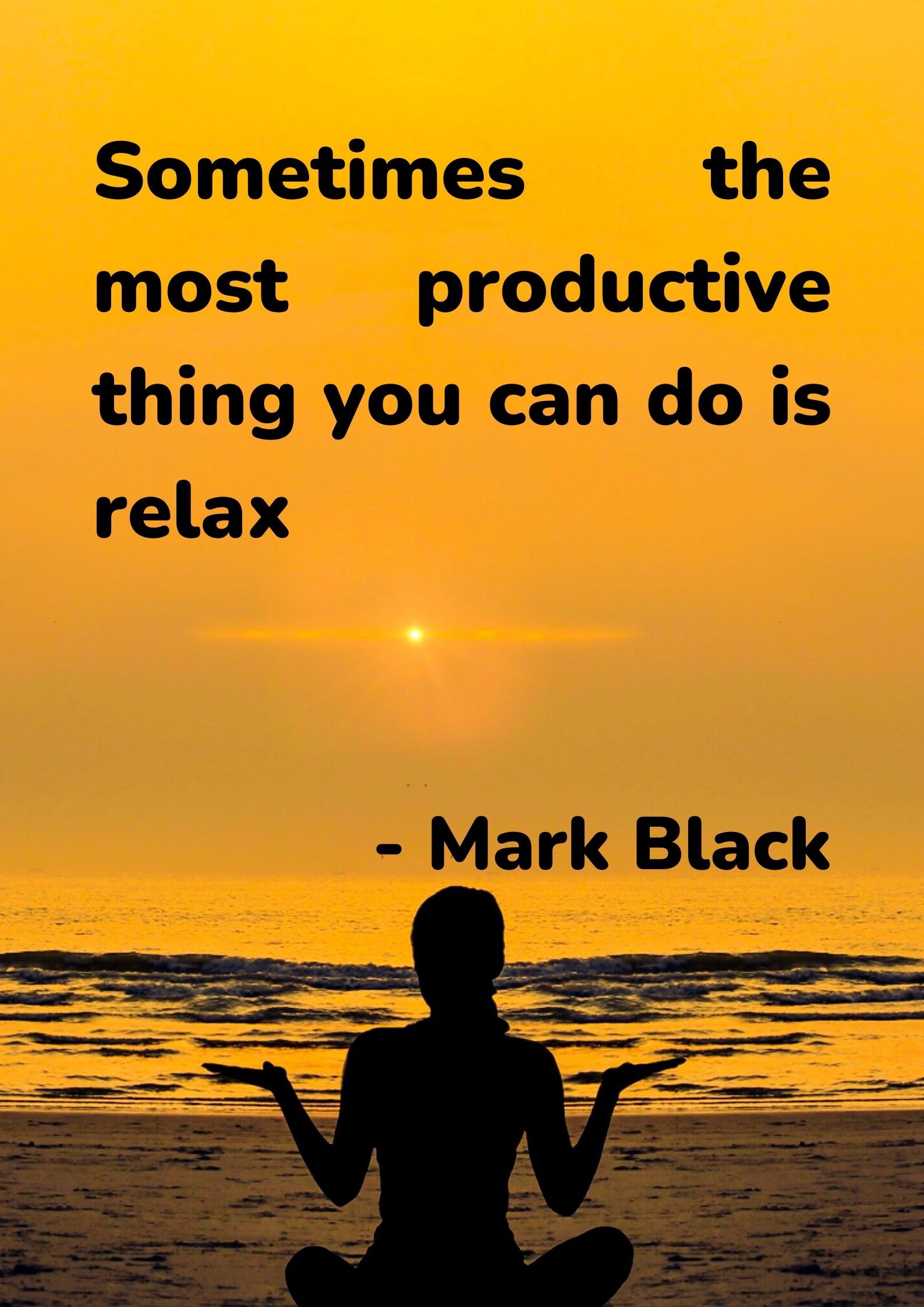 Today’s quote is a lovely one from author and speaker, Mark Black and one which I endorse 100%. Being able to relax and take time away from work, and anything that could be construed by work, depending on one’s point in life, is actually proven to make one more productive overall whilst also increasing the mood and improving mental health. This makes purposeful relaxation extremely important, and a valuable part of the daily routine. So, as I am doing this weekend, I would like all of my readers to purposefully relax this weekend, so you are fully charged for the new work week.