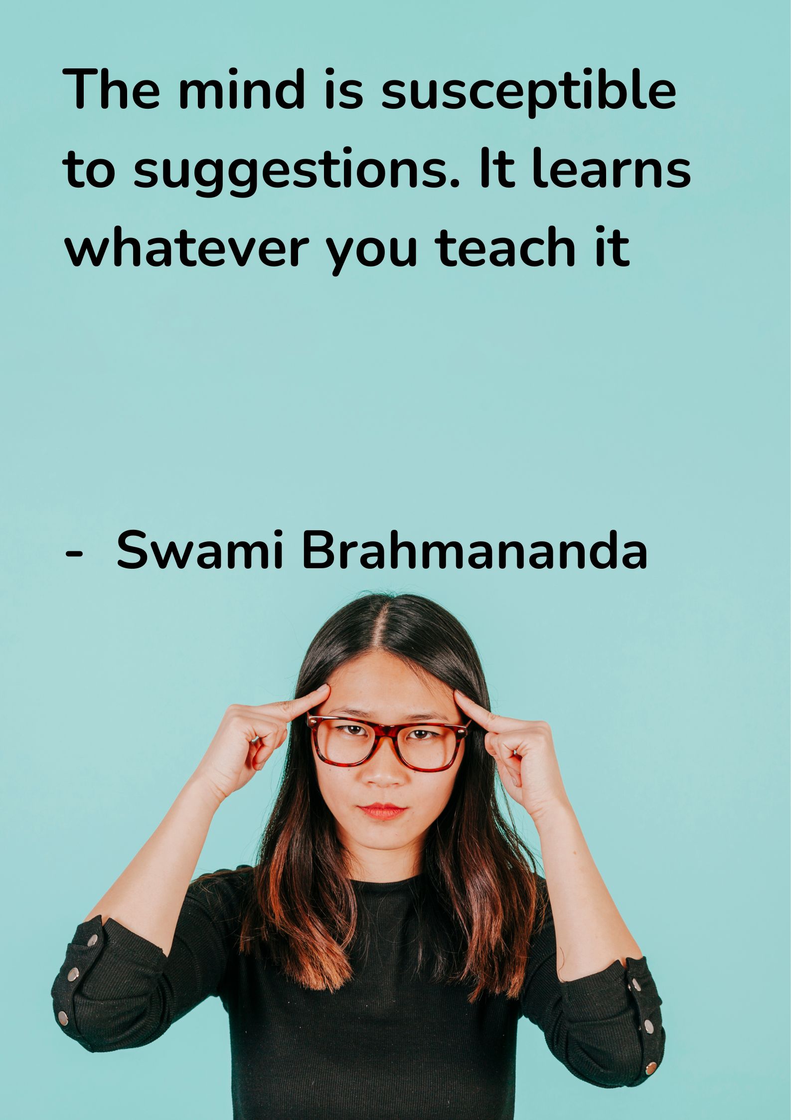 Today’s quote is from Swami Brahmanada, the first President of the Ramakrishna Math and Ramakrishna Mission. According to Swamiji, the mind is susceptible to suggestions and so it learns whatever you teach it. What this means is that what we want to do and achieve, all we need to do is keep suggesting the idea to the mind and it will achieve it by itself. This is very similar to the law of attraction where one needs to keep reinforcing an idea for the universe to make it happen.