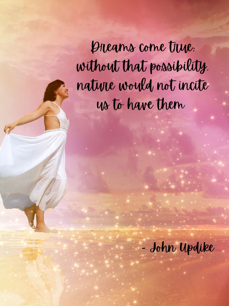 And in that vein, today’s quote is by American novelist, poet, short-story writer, and art and literary critic, John Updike, who was one of only four writers to win the Pulitzer Prize for Fiction more than once. Updike published more than twenty novels and more than a dozen short-story collections, as well as poetry, art, literary criticism, and children’s books, during his career. In this quote, Updike reflects on the idea that the very existence of dreams and aspirations is rooted in the potential for them to become reality. Updike suggests that dreams have the potential to be realized, and this potential is what motivates us to dream in the first place. Our capacity to dream and envision a better future is an inherent part of our nature as human beings. The quote implies that the idea of dreams becoming reality serves as an incentive for us to work hard, persevere, and take action toward achieving our goals. Without the belief that dreams can come true, we might lack the motivation to pursue them.