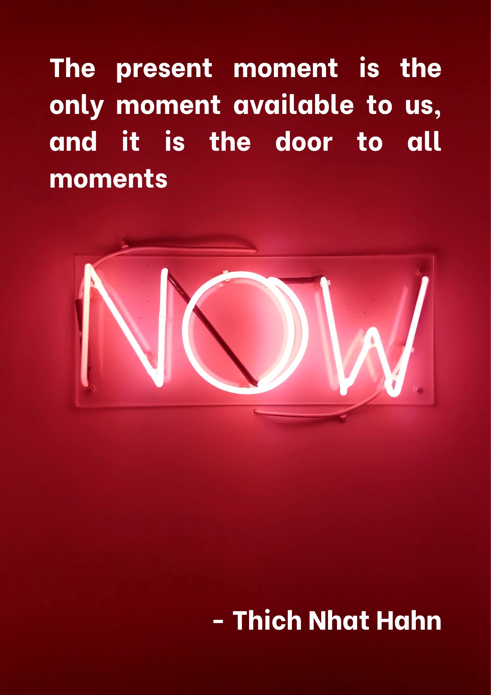 Vietnamese monk, peace activist, and author Thich Nhat Hanh is known for his teachings on mindfulness, meditation, and engaged Buddhism, which emphasize applying Buddhist principles to social and environmental issues. Thich’s quote underscores the significance of mindfulness and living in the present. The quote highlights the idea that the present moment is the only time that truly exists for us and emphasises the importance of being fully present and engaged in the “now.” By calling the present moment “the door to all moments,” Thich suggests that our experiences of the past and the future are interconnected with and accessed through our awareness of the present. The choices and actions we take in the present shape our past and influence our future. The quote suggests that by cultivating mindfulness and being present, we gain access to a deeper understanding of ourselves and the unfolding of our lives. The quote also reinforces the idea that each moment is fleeting and that, by fully embracing and appreciating the present, we acknowledge the transient nature of time. The quote encourages individuals to recognise the richness of the present moment, to be fully engaged in their experiences, and to understand that the way they navigate the present influences the past and shapes the future. It speaks to the profound wisdom found in being present and mindful in our daily lives.
