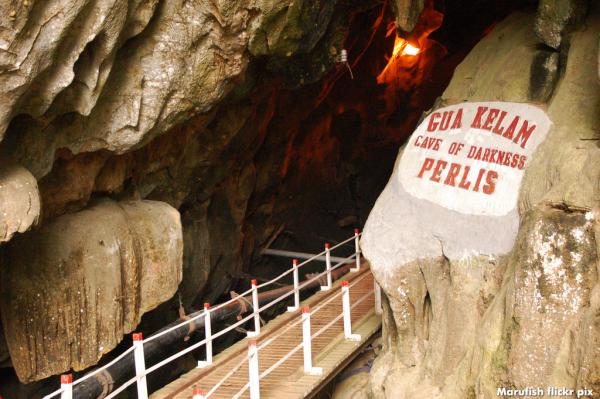 Located 33 km north of Perlis in Kangar, Gua Kelam Caves is one of the most unique limestone caves in Malaysia. Also known as the Cave of Darkness, adorned by stalagmites and stalactites, is maintained by the Perlis Forestry Department. The prime highlight of Kelam Caves is the 8-foot wide wooden suspension bridge leading through the illuminated limestone path, carved inside the cavern by an Englishman in the 1930s, for transporting tin from the nearby mine.
