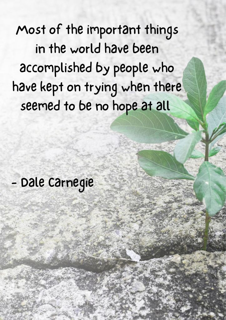 Dale Carnegie is an American writer, lecturer and developer of famous courses in self-improvement, salesmanship, corporate training, public speaking and interpersonal skills. He is best known for his groundbreaking book “How to Win Friends and Influence People,” first published in 1936, which has become one of the best-selling self-help books of all time. Carnegie’s quote emphasises the power of perseverance and determination to achieve significant accomplishments. The quote highlights that many of the world’s greatest achievements have been made by individuals who persisted despite facing seemingly insurmountable challenges and hopeless situations. It underscores that success often comes from a relentless commitment to one’s goals and a refusal to give up, even when the odds are against them. Carnegie’s words serve as an inspiration to keep striving and maintaining hope, suggesting that unwavering determination can lead to remarkable outcomes, regardless of the difficulties encountered.