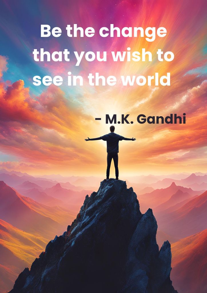 Today’s quote encapsulates the essence of personal responsibility and empowerment. It challenges individuals to embody the qualities and behaviours they desire to see in others and society, emphasising that change begins with oneself. Rather than waiting for external circumstances or people to transform, Gandhi calls on us to proactively align our actions with our ideals. This quote reflects a deep understanding of human influence. Change is not a passive process; it requires active participation. When one models the values they wish to see—such as kindness, honesty, or tolerance—they inspire others to follow suit. The quote also implies accountability. Blaming external forces for societal shortcomings is easier than reflecting on our role within the system. Gandhi’s words remind us that we are both contributors to the problem and part of the solution. By transforming our habits, attitudes, and choices, we contribute to the larger process of societal evolution. On a deeper level, the quote is about empowerment. It emphasises that individuals hold the power to initiate meaningful change. This quote is a call to action. It challenges us to live authentically, act with integrity, and take responsibility for the world we are helping to create.