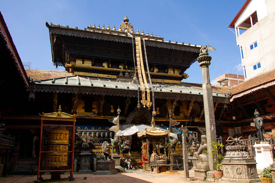 Uku Bahal is a Buddhist monastery located south of Patan Durbar Square. It is also called Rudra Varna Mahavir and is filled with sacred images and shrines. Consisting of three courtyards, the outer courtyard has two flag-bearing British style lion statues and an impressive gate. One can find splendid items such as brass bells, winged horses, statues of peacocks, elephants Garudas and thunderbolts called Dorjes. Along with that, a statue of Rana Prime Minister Juddha Shumsher, as well as paintworks and preserved roof struts, are a few things that people can see.