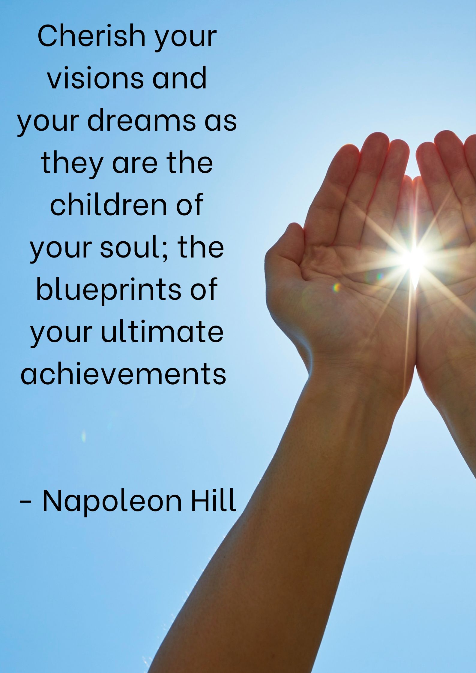 Today’s quote by Napoleon Hill, the American self-help author best known for his landmark book Think and Grow Rich, emphasises the vital role that dreams and visions play in shaping our future. Hill encourages us not to dismiss or undervalue our aspirations, no matter how lofty or distant they may seem. By calling them the “children of your soul,” he conveys how deeply personal and sacred our dreams are; they emerge from the innermost parts of who we are. Like children, dreams require nurturing, protection, and belief in their potential.