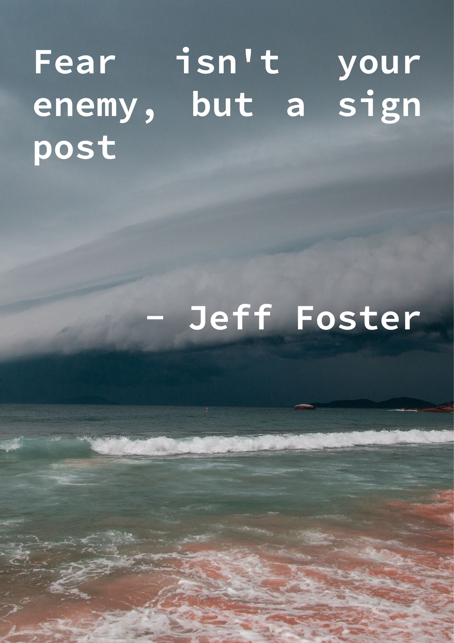 British spiritual teacher and author Jeff Foster’s post reframes the commonly held belief that fear is something purely negative. Instead of viewing fear as a threat to avoid, he suggests we see it as a signpost, a guide or signal that can point us toward areas in our life where growth, healing, or change is needed. Fear often arises when we’re stepping outside of our comfort zone, facing the unknown, or confronting painful truths. In this sense, it can serve a valuable purpose. Rather than being the enemy, fear can show us where we are holding back, what matters deeply to us, or where old wounds still influence our behaviour.