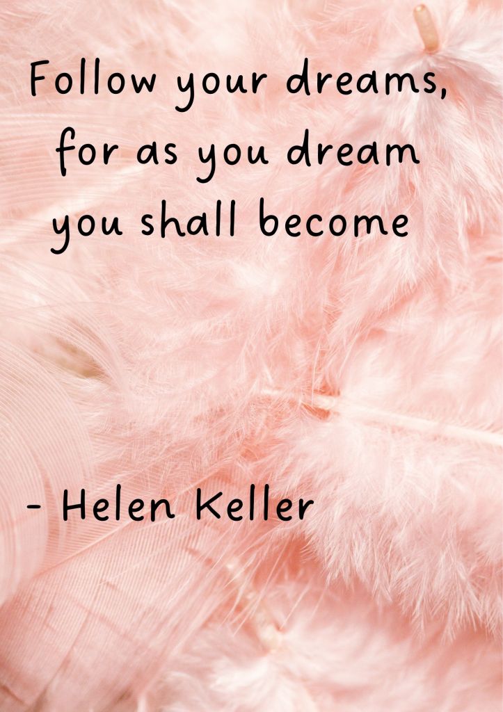 Your dreams reflect your deepest values, passions, and purpose. As you follow them, you begin to align your actions, decisions, and mindset with the vision you hold. In doing so, you shape your identity; you “become” the person who is capable of living that dream. The journey itself moulds you. Keller’s words remind us that the path to becoming our fullest selves is intertwined with daring to dream. Even if dreams are not fully realised, the pursuit enriches our character, strengthens our resolve, and reveals what we’re truly capable of.