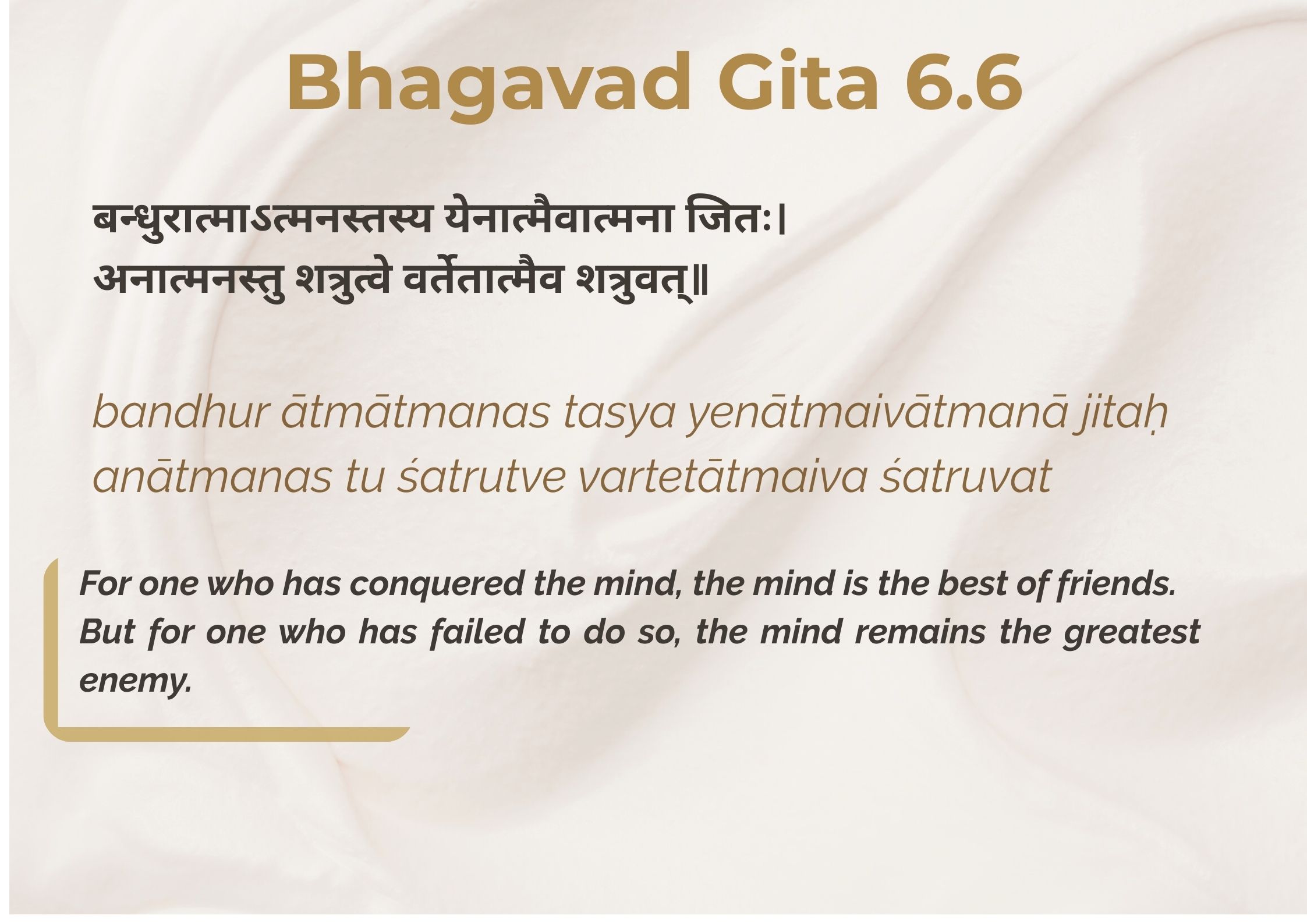 The Bhagavad Gita verse that I want to highlight this week is verse 6.6. Conquering the mind sounds dramatic. It is not. It is not about eliminating thought. It is about not being ruled by every impulse. It is about pausing before reacting. It is about not believing every emotion deserves immediate action. A trained mind becomes supportive. It gives perspective. It resists exaggeration. It tolerates discomfort. An untrained mind amplifies everything. It creates urgency where none exists. It pushes comparison, fear, and resentment. The difference between friend and enemy is not external. It is discipline. Friendship with the mind is built through repetition.