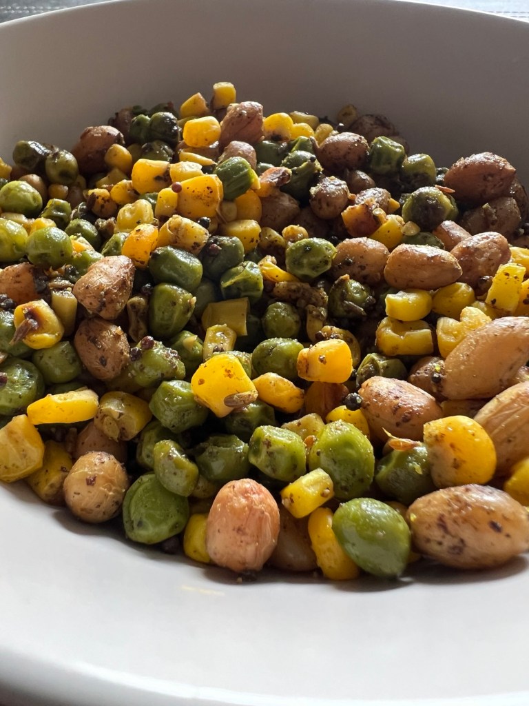 • Soak the corn, peas, and peanuts in a bowl with hot water for at least 30 minutes.