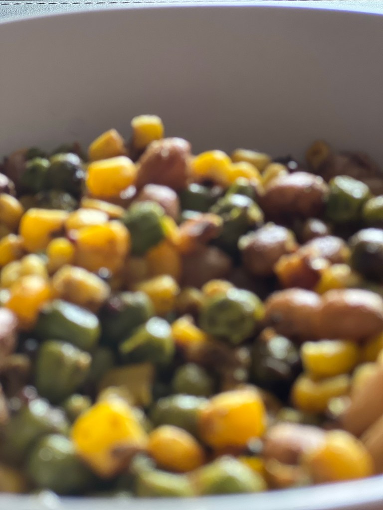 • Salt the water, cook the vegetables and peanuts on the stovetop or microwave for 5 minutes, and drain.
