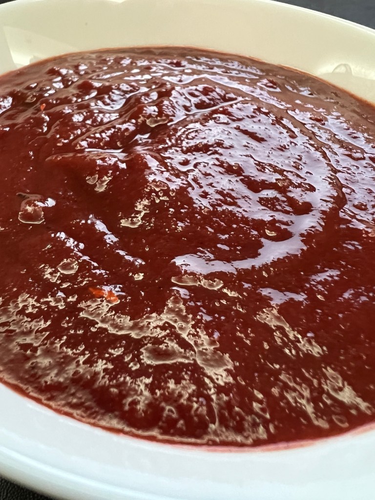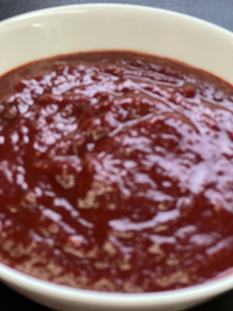 • My chutney turned brown/purple because I only had purple onions at home. If you use the white onions, it turns a nice red colour