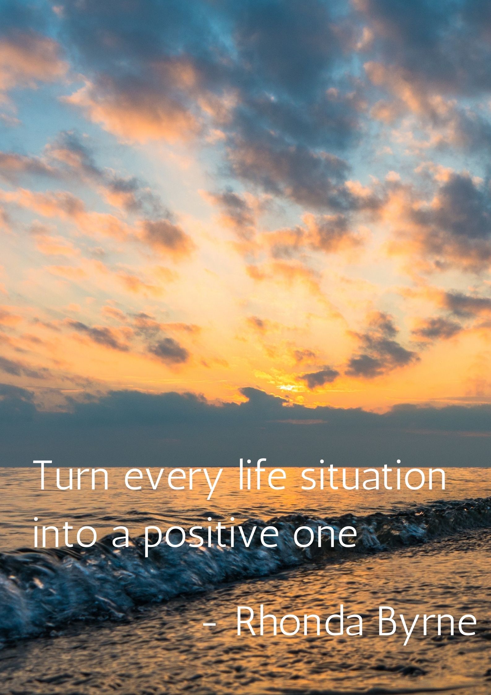 Today’s quote comes to us from Rhonda Byrne, an Australian television writer and producer, whose best selling book, The Secret and then the film based on the book is based on the law of attraction. She tells us to turn every situation in life into a positive one. This is akin to saying the glass is half full instead of half empty where we look at the positive aspect of a situation and perceive life through an optimistic lens instead of being pessimistic.