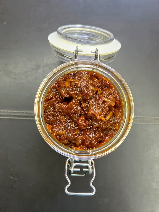 A thokku is a pickle which is cooked down to a paste. In normal pickles, you don’t cook them (or barely cook them) allowing the vegetables (or fruits) to absorb the spices from the spice paste that coats them. In a thokku, you cook it down until there is no moisture left in the vegetable (or fruit) and this can also be made with herbs like coriander (or cilantro as it is called in North America) or curry leaves.