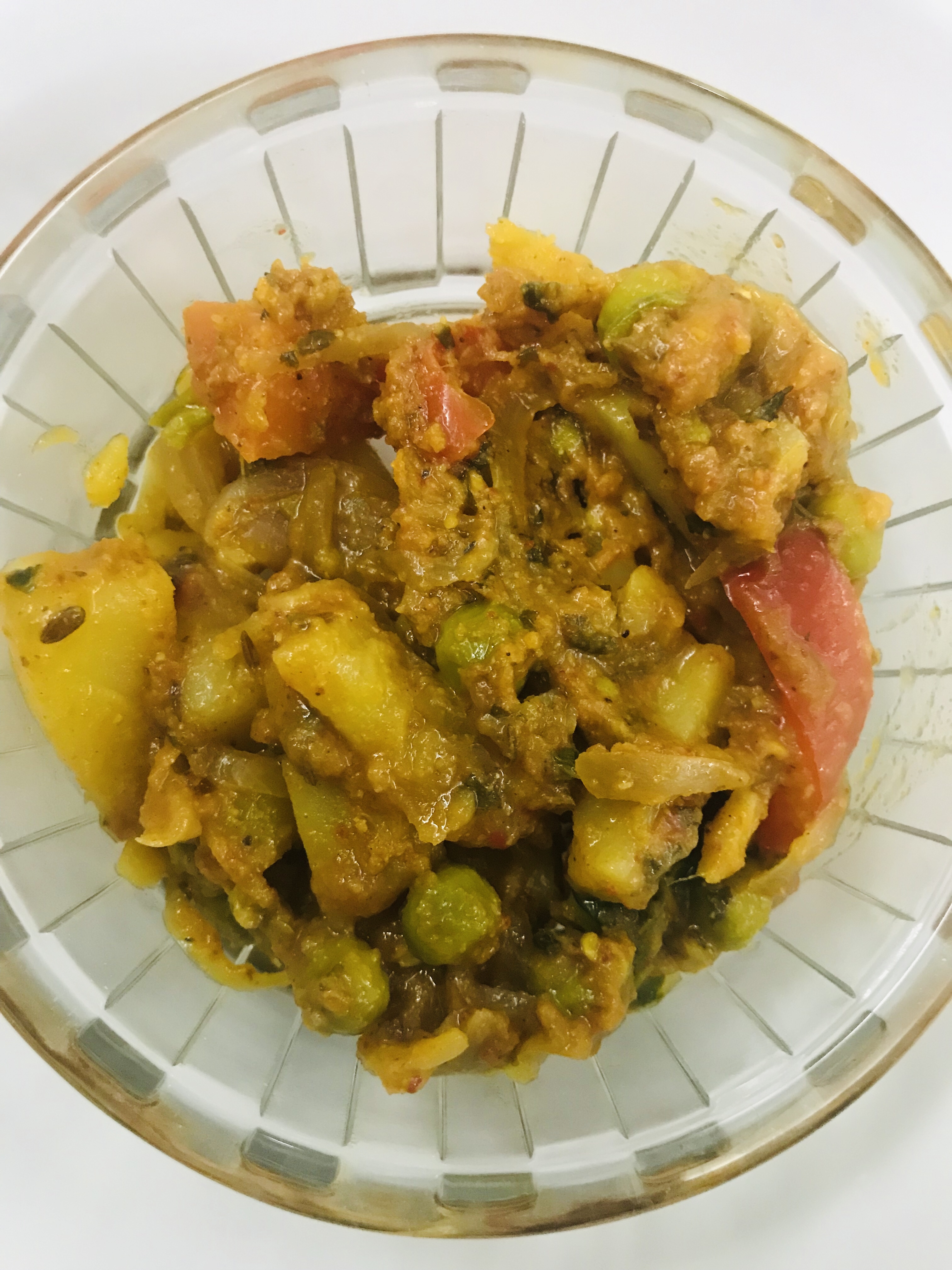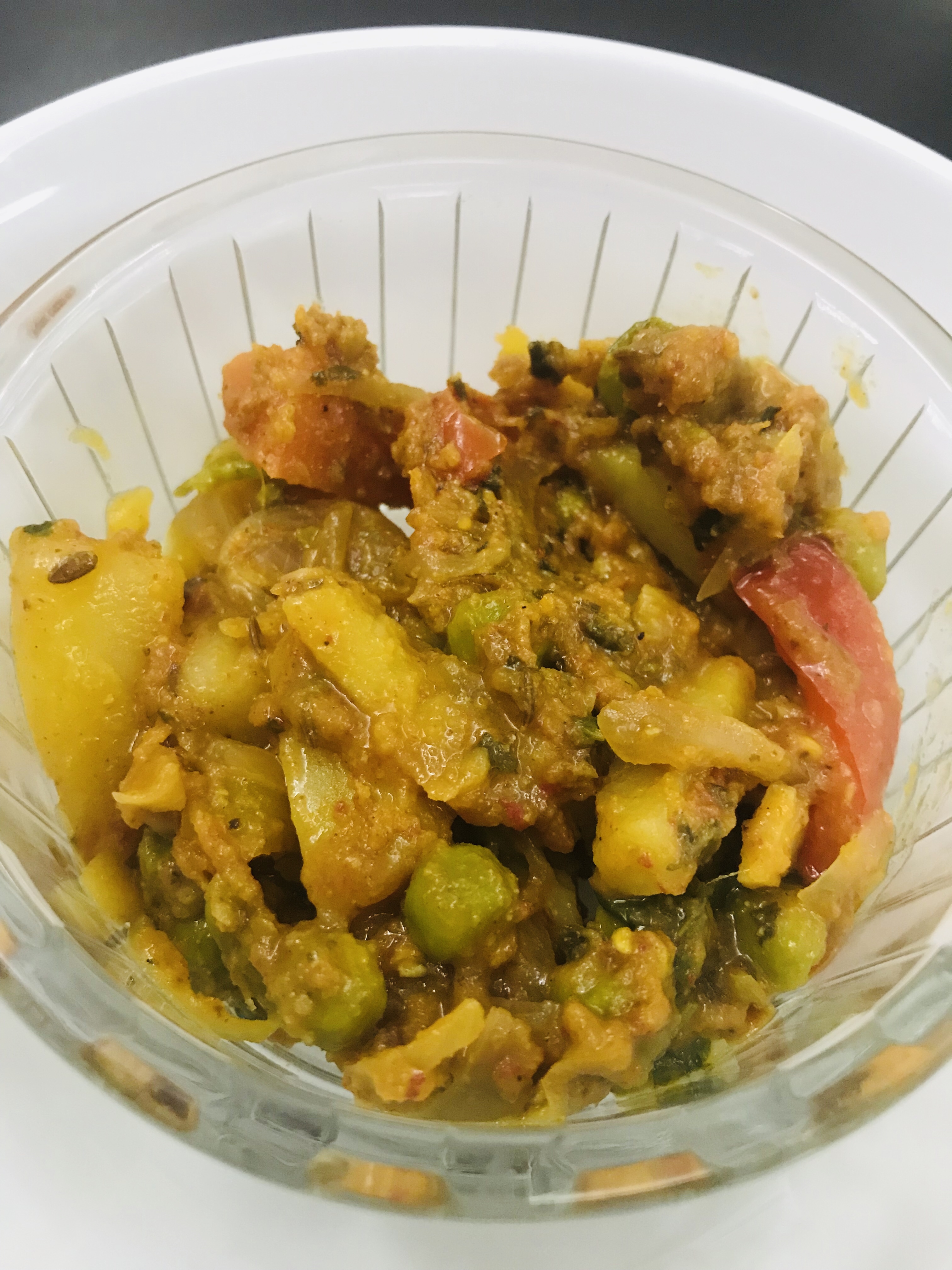 I used a mixture of carrots, cauliflower, brocolli, potatoes, green bell peppers and paneer to make the recipe, but you can play around with vegetables of your choice. The recipe is also not very thick, so you could possibly add some thickening agent if you want it thicker.