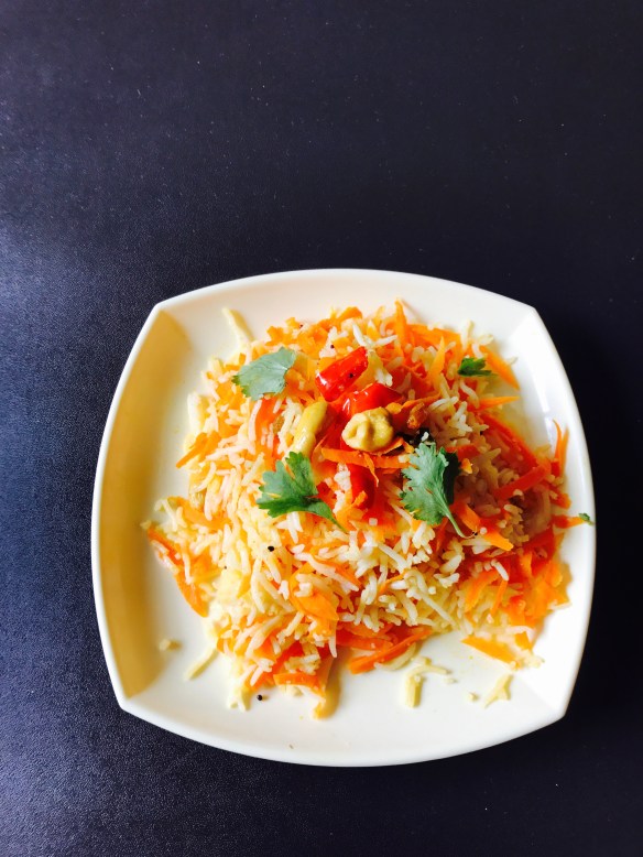 This is a complete meal in itself with carbs from the rice, protein from the dal and fibre from the vegetables.