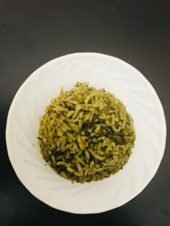 I was feeling very lazy to cook last week and didn’t want to make something complicated. I thought of making some kind of a pulao, then zeroed on to this coriander rice. This is a one pot meal and is super yummy and delicious! It’s also very easy to make, even if you are a novice in the kitchen.