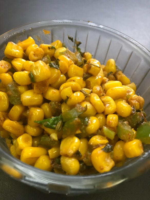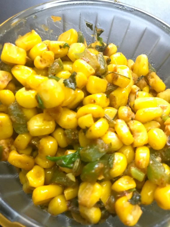 Over the weekend, I brought some frozen sweet corn without realising that I already had some at home. So earlier this week, I decided to try a dry sweet corn curry. This was really simple and took me less than 15 minutes to make, start to finish.